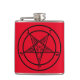 Baphomet Pentagram Flask. Here's a cool flask for the satanist, occultist, witch or metalhead featuring a black Baphomet pentagram on crimson red. This will make drinking whatever your poison is so much more fun and wicked. Give as a gift to a satan loving drinker, someone who likes Baphomet, a witchy person or someone interested in the occult. Metal fans will also enjoy this awesome flask.