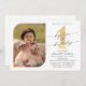 Elegant, minimal Baptism & First Birthday Photo Invitation Featuring photo, gold number one, typography script baptism and birthday. Personalise with modern lettering on a white background.
