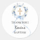 Baptism blue boy florals wreath cross thank you classic round sticker
