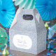 This favor box features a soft and elegant blue-and-white floral pattern that gives it a timeless, delicate look—perfect for a baptism or christening celebration. The intricate botanical design wraps around the entire box, creating a cohesive and refined aesthetic.