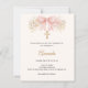 Celebrate your daughter’s special day with this elegant and feminine baptism invitation featuring a soft blush bow with delicate and beautiful floral accents. A golden cross. Designed in a warm ivory tone with a clean and timeless layout, this invitation creates a refined and graceful first impression.