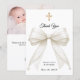 Baptism bow white ivory pearls photo thank you card