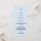 Baptism, christening reception menu card. Personalise and add a name, date and the menu. A light blue background and a golden cross.