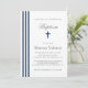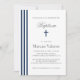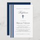 BAPTISM Chic Vertical Striped Navy Blue Cross Invitation