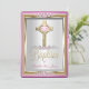 Baptism Christening Girls Cross Pink Pearl Invitation