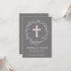 The elegant and modern 4.5" x 6.25 baptism or christening invitation features a pink cross and floral wreath. It has a pretty, feminine design and can be customised for your baby's special religious occasion.