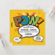 A fun, cool and trendy comic book inspired baptism, christening invitation that puts the wham, zap, pow into your superhero's celebration event. The reverse features a matching comic book polka dot pattern and speech bubble for extra event details and address. Designed by Thisisnotme©
