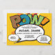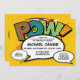 A fun, cool and trendy gender neutral comic book inspired baptism, christening invitation that puts the wham, zap, pow into your superhero's celebration event. The reverse features a matching comic book polka dot pattern and speech bubble for extra event details and address. Designed by Thisisnotme©