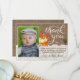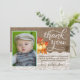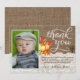 Pumpkin and Autumn Leaves decorate this burlap and lace effect thank you card for a Baptism, Christening or 1st Communion etc.