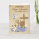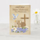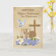 This personalised card is a beautiful way to honour someone’s journey through Baptism, First Holy Communion, and Confirmation. Their name is featured on the front, making this a truly special keepsake. A meaningful arrangement of Christian symbols—a cross, chalice, candle, shell, and dove—represents the deep faith and blessings of these sacraments. Set against a soft tan background with gentle texture, the design conveys warmth and reverence. Inside, a heartfelt message shares blessings and congratulations, making this a thoughtful choice for such a sacred milestone.