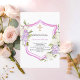 Baptism crest pink purple flowers girl invitation
