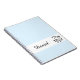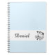 Custom name notebook is shown in a light blue colour with a accent strip with a baptism dove and a sample name. Customise this item and change the name to yours.