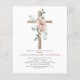 Budget Daughter's Dusty Pink Rose and Sage Green Floral and Eucalyptus - Gold Foil Cross Botanical Greenery Watercolor Christian Religious Baptism Invitations.