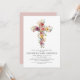 Daughter's Dusty Pink Rose and Sage Green Floral and Eucalyptus - Gold Foil Cross Botanical Greenery Watercolor Christian Religious Baptism Invitations.