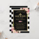 Baptism - Elegant Floral Gold Black White Stripes Invitation