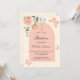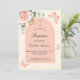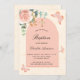 Golden marble as background decorated with eucalyptus greenery, a rose gold and blush pink rose, golden leaves and a rose gold arch frame and butterflies. Personalize and the childs name and ceremony details.