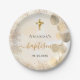 For a baptism, gender neutral. A golden watercolored gold background with brush strokes and with faux glitter dust, a faux gold cross. Decorated with golden eucalyptus leaves, foliage. Personalise and add a name and date.