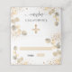 Personalise and add a name. A white background, decorated with golden eucalyptus sprigs, faux gold glitter sparkles and a golden cross. With the word baptism written with a modern hand lettered style script.