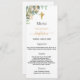 Baptism reception menu card. Personalise and add a name, date and the menu. A chic white background. Decorated with watercolored eucalyptus leaves, sprigs, greenery, faux gold leaves. A faux gold cross.