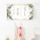 Welcome to an elegant baptism, gender neutral. A chic white background. Decorated with green watercolored eucalyptus leaves, sprigs, greenery, faux gold leaves and golden glitter spots. Personalise and add the name of the child and a date. Black and golden letters.