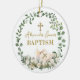 Baptism Eucalyptus Roses Cross Photo Ceramic Ornament