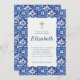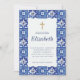 Composed of serif typography. All against a backdrop of blue and white Mediterranean tiles.
