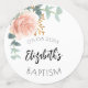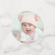 A chic white background decorated with a rose gold, blush flower, rose and eucalyptus greenery. Personalise and add a photo, date, name.