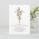 Baptism Greenery Dusty Pink Rose Cross Invitation