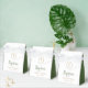The green panels on the side of the favour boxes serve as a beautiful accent colour, complementing the overall design and adding a refreshing element to the aesthetic. The combination of green and gold creates a sense of refinement and adds a touch of luxury to your baptism favours.