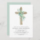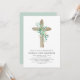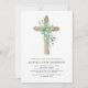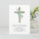 Sage Green Boy's Eucalyptus and Wooden Cross Botanical Greenery Watercolor Christian Religious Baptism Invitations.