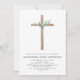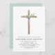 Sage Green Girl's Eucalyptus and Wooden Cross Botanical Greenery Watercolor Christian Religious Baptism Invitations.