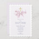 Celebrate your little girl's special day with this modern pink bow and gold cross invitation. This customisable design features soft watercolor details and formal text layout — ideal for both baptism and christening events. Personalise with your child’s name, date, location, and RSVP. A timeless choice for a meaningful milestone.