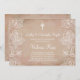 Invite guests to your baptism with this personalised dusty rose with white lace background invitation. Perfect for little girl's, you will love this classic design. It is easy to personalise these beautiful yet affordable invitations yourself. Perfect for first communions, baptisms, bautizo or bautismo. They look amazing printed on pearl shimmer stock. Victoria is a professional invitation designer located in Jupiter, Florida near West Palm Beach.