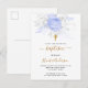 Baptism light blue florals boy elegant white invitation postcard