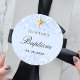 Baptism light blue glitter sparkles boy cross classic round sticker