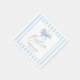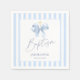 Celebrate your little boy's or girl's special day with this modern baby blue bow and stripe paper napkins. Perfect for a baptism celebration, this customisable design features soft watercolor details and formal text layout. Personalise with your child’s name and date.