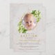 Baptism Photo Floral Geometric White Lilies Marble Invitation