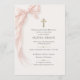 Baptism pink coquette bow girl invitation featuring soft feminine details and an elegant faith inspired design. Perfect for celebrating your daughter’s baptism with a sweet and timeless coquette aesthetic. Ideal for church ceremonies, christening celebrations, and family gatherings. Editable text for easy personalization. Print-ready layout.