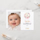 Baptism pink florals bow photo girl thank you card