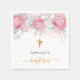 Baptism pink florals white elegant name script napkin