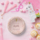 A rose gold background with an elegant rose gold confetti. The text: The name is written in dark rose gold with a large modern hand lettered style script. Personalise and add a date, name.