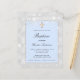 Faux silver and light blue coloured background decorated with faux silver glitter dust. Personalise and add a name and the details. Black coloured letters.