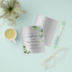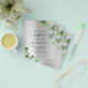 A modern, elegant baptism invitation, gender neutral. Faux silver metallic looking background decorated with eucalyptus greenery, sprigs. Personalise and add a name and details. Black coloured letters.