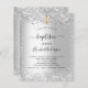 For an elegant and baptism invitation. A faux silver metallic looking background. Decorated with faux glitter and a golden cross. Personalise and add a name and details. Modern hand lettered style script