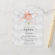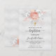 For an elegant baptism, celebrating a baby girl. A trendy faux silver metallic looking background. Decorated with rose gold and white florals, roses and a faux gold cross. Personalise and add the name of the child and details.