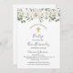 White Floral Baptism Spanish invitation. Invitación para bautizo