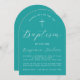 Baptism Teal Arch Cross and Script Boy Christening Invitation