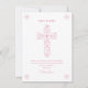 This modern Baptism, or Christening, Thank You Card features an elegant illustrated pink and white floral cross. A quick and easy way of thanking guests for joining a girl's religious celebration, it can be customised with your child's name and a personal note. The background colour can also be changed to your liking.