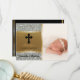 Beautiful silver and gold baptism or christening photo thank you cards- Baby's vertical photo on the right side. Background on the left is faux silver glitter for a shiny look. Reads Thank You for sharing my special day in black and gold with date in matching gold. Christian cross adorns the top. Baby's name at the bottom in elegant script lettering. Thin, gold metallic look ribbon in the centre separates the two halves. Back has matching black background and matching, faux gold metallic ribbon borders. Note: All images are printed. Not actual glitter or metal. Elegant, baby baptism thank you cards to show your appreciation for your guests for either baby boy or baby girl. Click Customise option to change text colours, size, and font styles. Visit our online Zazzle.com/angela65 shop for other personalised, photo baptism cards.