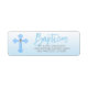 Lovely return address labels with light blue cross and faux diamond in middle. Grey (grey) letters, background colour is white. Prefect for boy's baptism. Add these to your invitation envelope cards. Get matching items!
